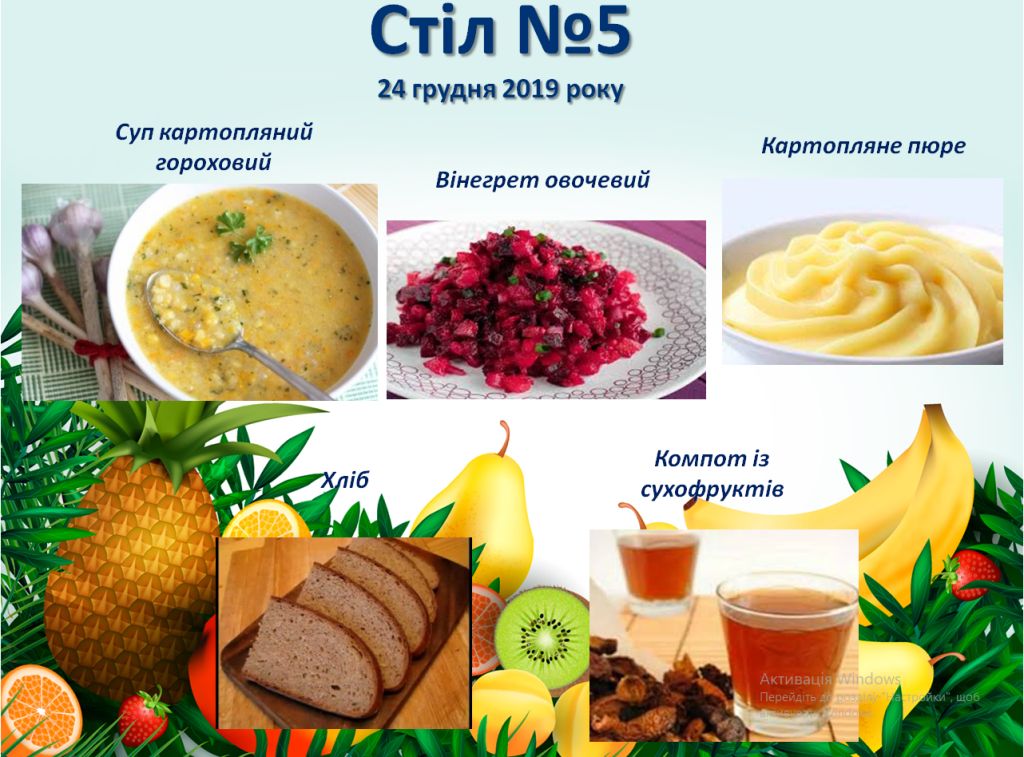 Дієтичне меню Стіл №5 і Стіл №9 на 24 грудня 2019 року