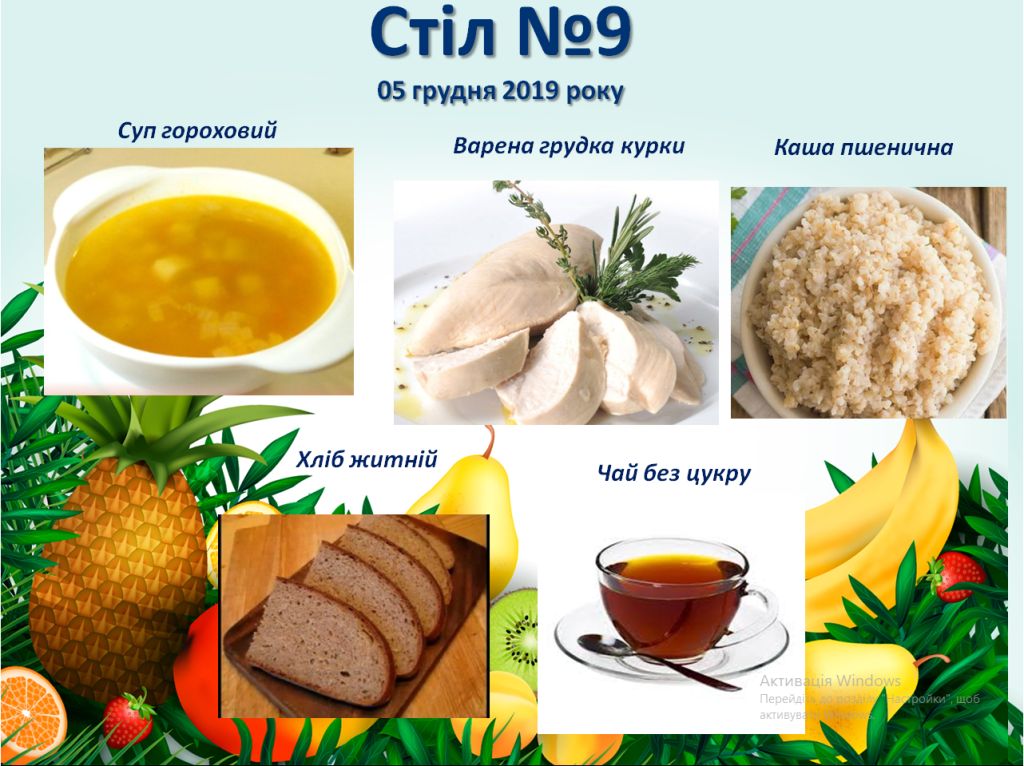 Дієтичне меню Стіл №5 і Стіл №9 на 05 грудня 2019 року