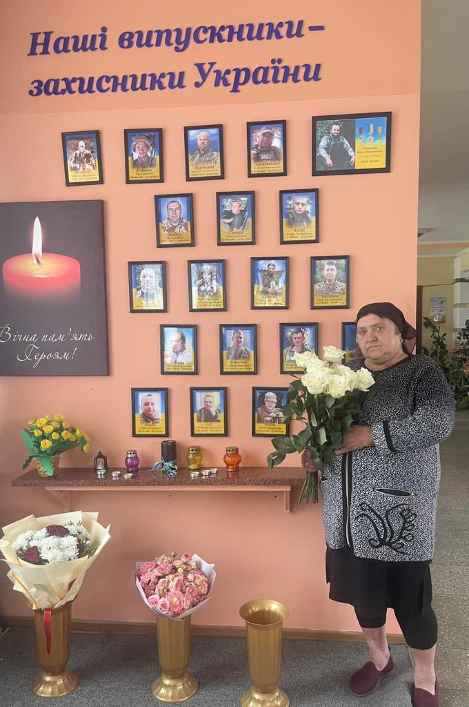 це місце глибокої шани і поваги нашим захисникам, які полягли за Україну, за світле майбутнє. Сюди приходять учні та вчителі, рідні та близькі. Сьогодні завітала родина Миколи Кужеля - мама та брат. Білі троянди - як символ світлої памʼяті про сина й усіх полеглих випускників.