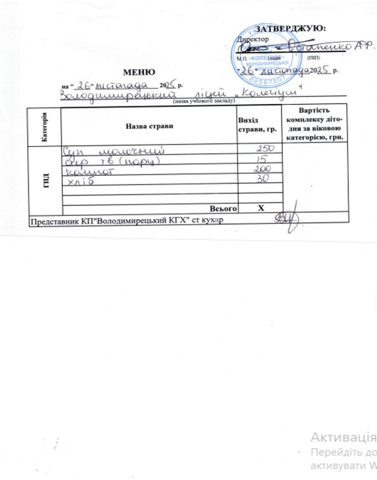 Меню на 26.11.2025 р.