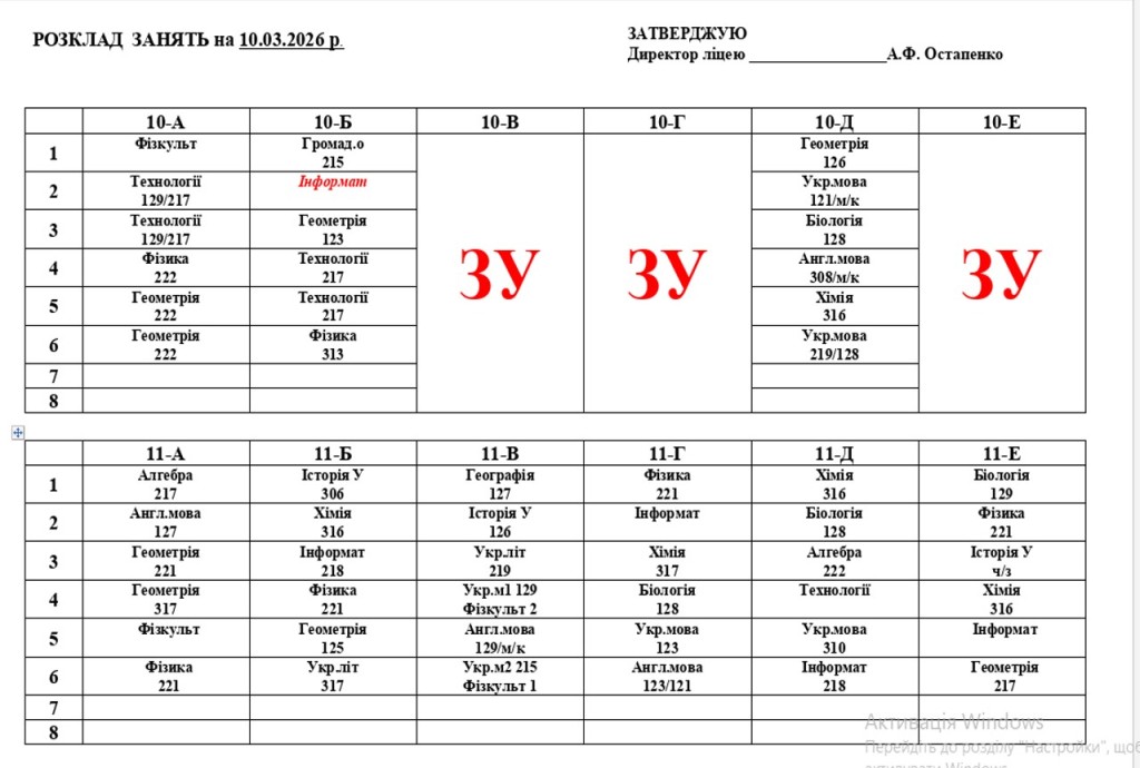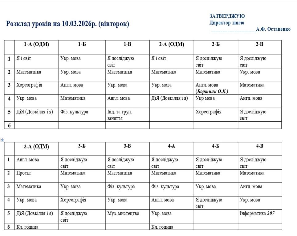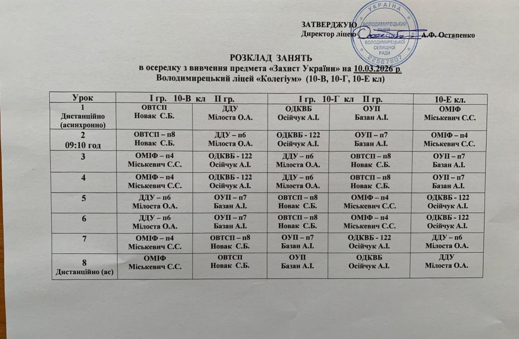 Розклад навчальних занять на 10.03.26