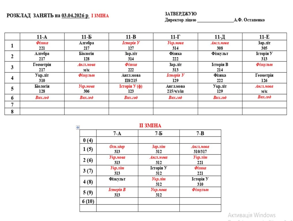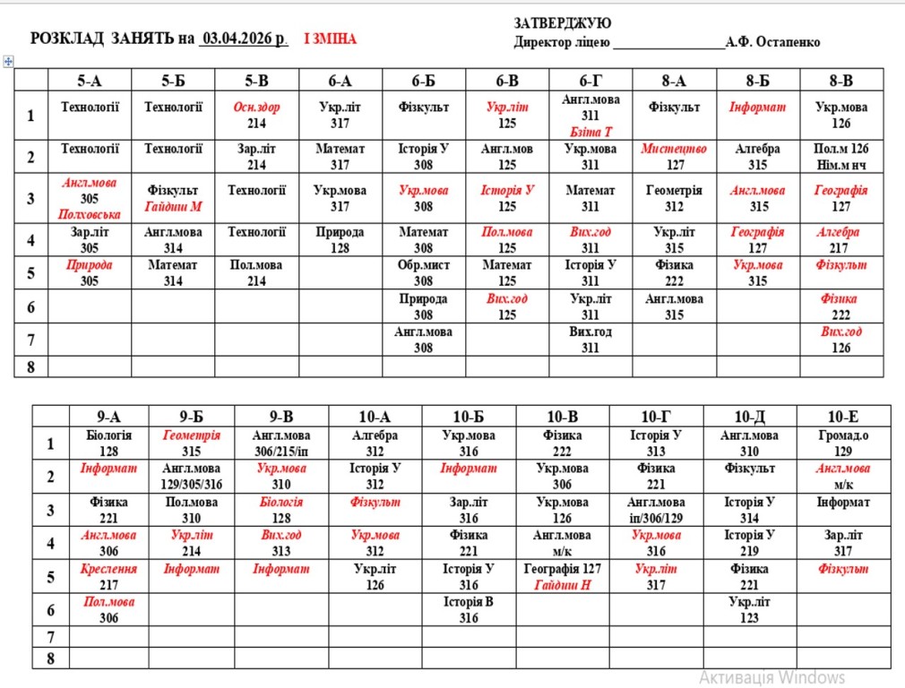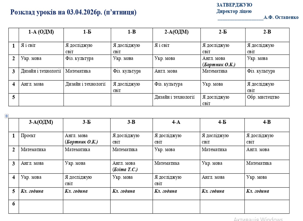 розклад навчальних занять на 03.04.2026 року