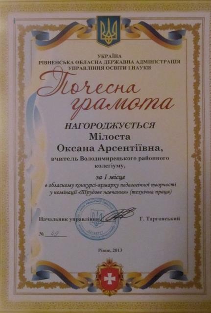 22 березня 2013 року в Рівненському обласному інституті післядипломної педагогічної освіти відбулися підсумки десятого ювілейного обласного конкурсу-ярмарку педагогічної творчості.