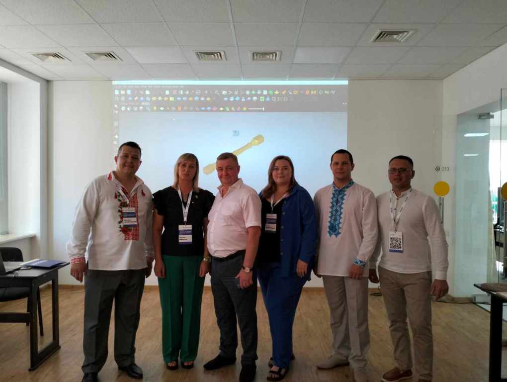 - Дуляницька Ірина, вчителька математики, Хомич Віталій, вчитель технологій, та Мілоста Оксана, вчителька інформатики, - в освітній майстерні «Інтегроване навчання на уроках технологій за допомогою цифрових верстатів з ЧПУ та вишивальної машини».