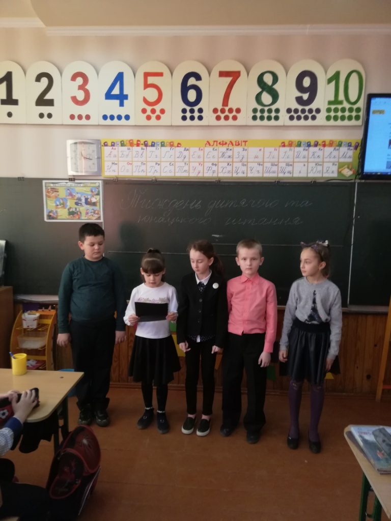 «Книга - найцінніший скарб», «Книги-ювіляри- 2019», огляд-панораму «Читати ці книги - престижно», конкурс малюнків «Мій улюблений казковий герой», акції: «Подаруй бібліотеці книгу», «Прочитав сам – запропонуй другому», бесіди: «Тиждень читання» у 2-В класі та «Сучасний учень і культура читання» у 5-Б класі.Також було проведено бібліотечні уроки: «Лабіринти у книжковому морі» у 4-А класі та «Літературні казки» у 4-В класі,а для учнів 3-В класу година книголюба «Книги- вірні друзі, бережи, їх».