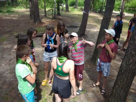 учні наметового табору "Поліглот"працювали над темою дня "Захист навколишнього середовища":готували та захищали свої проекти, дбали про чистоту містечка, купалися в озері, провели змагання команд на найкраще кумедне фото.