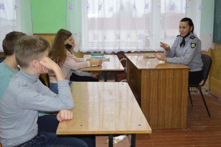 В ході зустрічі працівники ювенальної превенції ознайомили учнів з видами правопорушень, які часто зустрічаються у шкільному середовищі та на вулиці, а також про відповідальність, яка передбачена законодавством за вчинення шкільного булінгу та домашнього насильства.