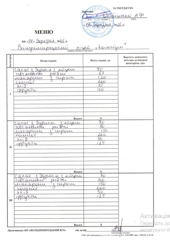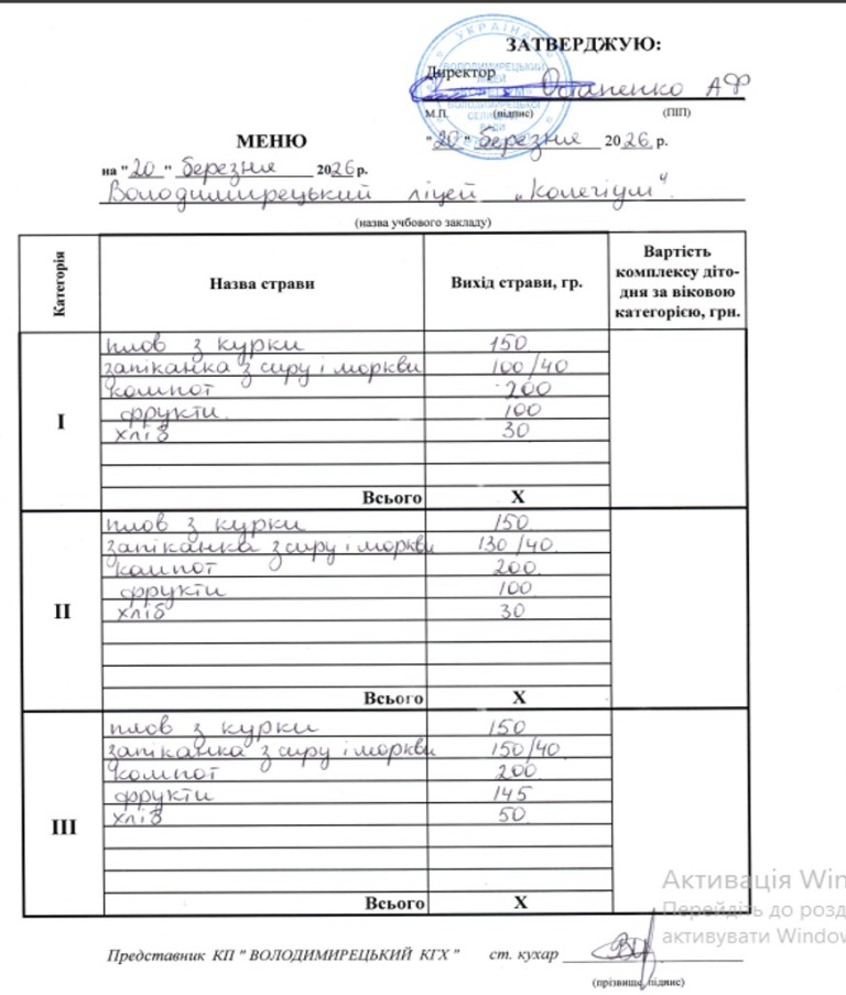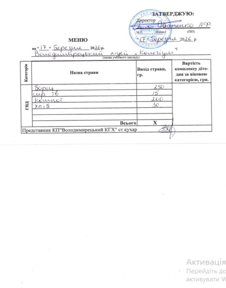 Меню на 17.03.2026 року