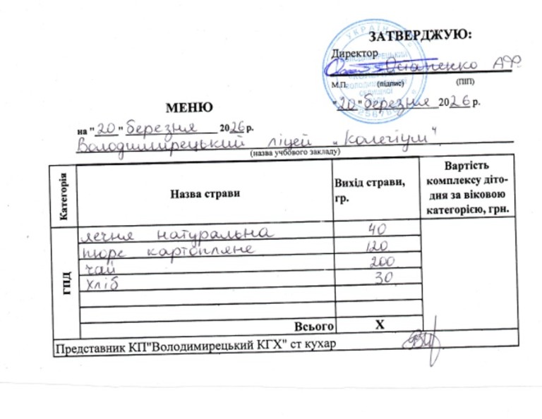 меню на 25.03.2026 року