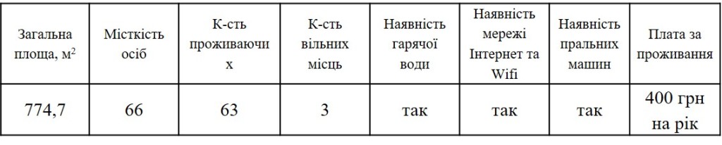 Наявність гуртожитків та вільних місць у них, розмір плати за проживання