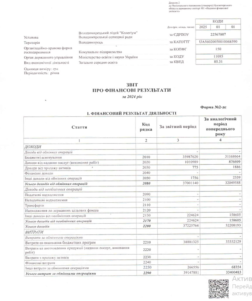Інформація про використання публічних коштів » Володимирецький ліцей "Колегіум"