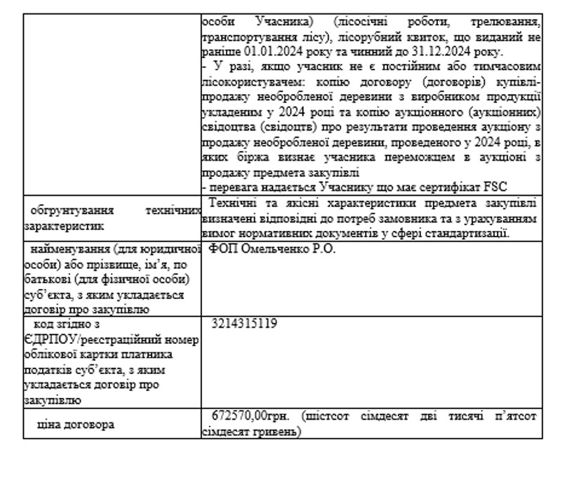 Закупівля ДК 021:2015 – 03410000-7 Деревина (деревина дровяна непромислового використання)
