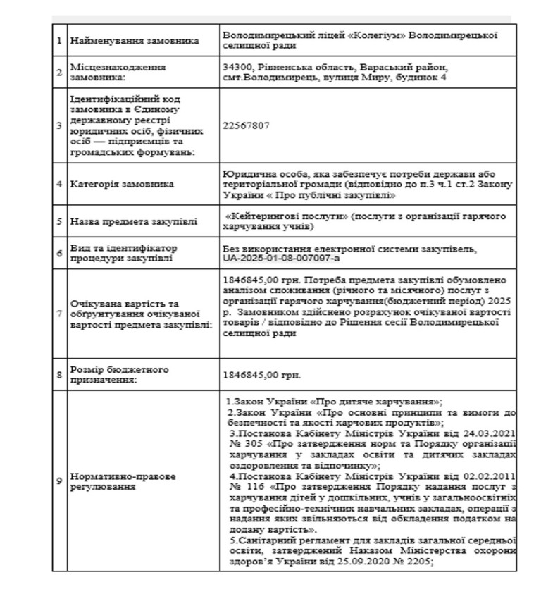 Закупівля ДК 021:2015 – 55520000-1 Кейтерингові послуги (послуги з організації гарячого харчування учнів)