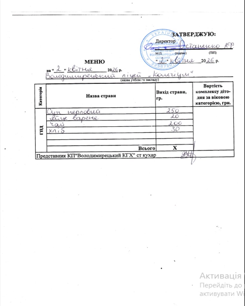 Меню на 02.04.2026 року