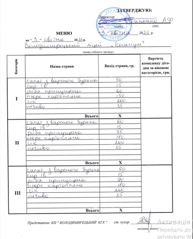 Меню на 03.04.2026 року