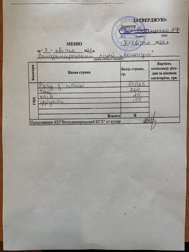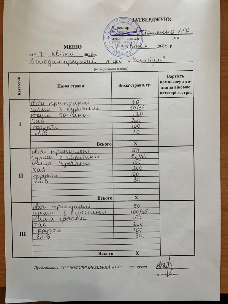 Меню на 07.04.2026 року
