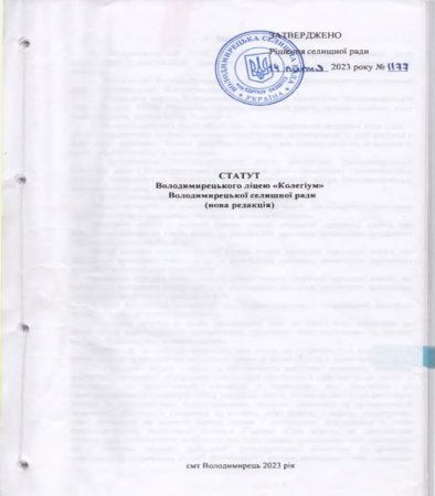 Статут Володимирецького ліцею "Колегіум" Володимирецької селищної ради(Нова редакція)