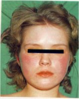 Гіперемія обличчя, шиї, “кролячі” очі.