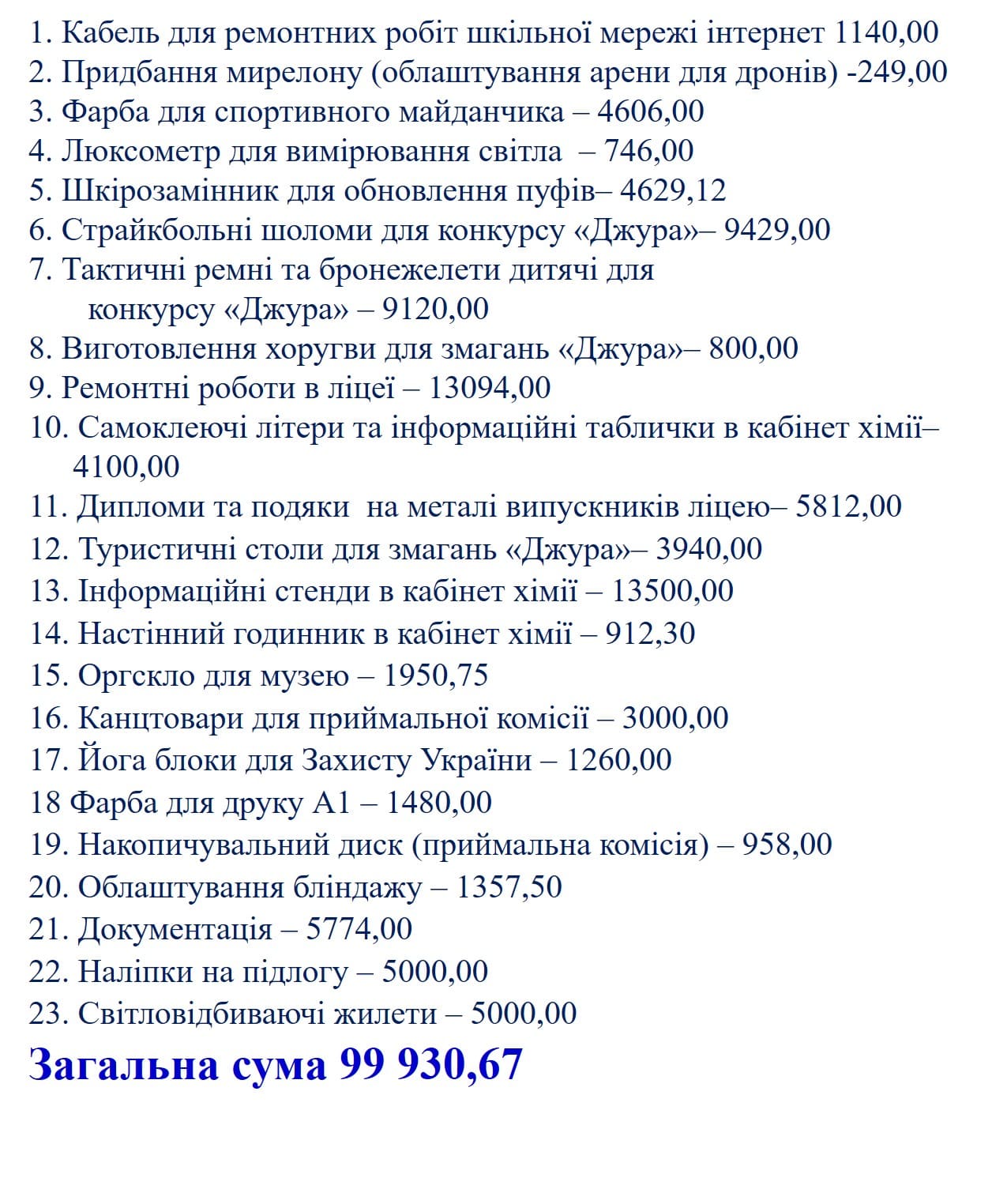 Звіт про використання благодійних внесків з 01.06-17.08.2023 року